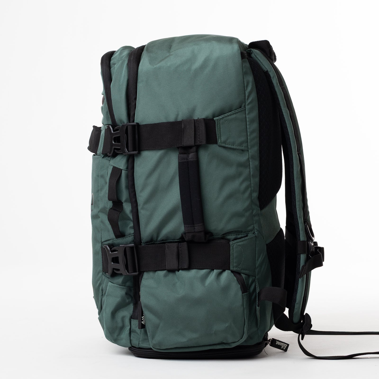 The large top front pocket can fit a laptop and features multiple internal sleeves for smaller essentials and includes a hook for your keys. A smaller front-side pocket is lined with soft fabric providing safe storage for your phone or sunglasses. The expandable bottom compartment separates used gear from clean, with a mesh ventilation window to promote airflow and reduce odor buildup